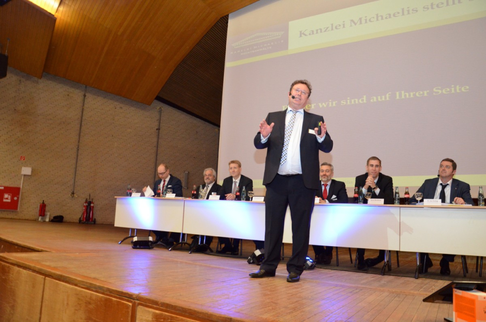 Stephan Michaelis stellte in seinem Eröffnungsvortrag die Bedeutung des Unternehmenskaufs bzw. -verkaufs für Versicherungsmakler heraus. Die demografische Entwicklung und die Nachwuchsprobleme der Branche würden dazu führen, dass bis zum Jahr 2020 40% der Makler nicht mehr am Markt seien. Im Zuge dessen komme dem Bestands(ver)kauf eine immer größere Bedeutung zu. Er verwies aber auch auf die zahlreichen Problemfelder, die ein solches Vorhaben mit sich bringen. Eine Vielzahl an Rechtsgebieten sei betroffen. Zudem empfahl er Verkäufern – gerade angesichts der sinkenden Preise für Bestände in den letzten Jahren – ihr Unternehmen frühzeitig fit zu machen. Seine Empfehlung: „Machen Sie die Braut hübsch“. Um einen guten Preis zu erzielen seien jeweils zu gleichen Teilen die Bereiche EDV, Bestand und Rechtssicherheit maßgeblich.