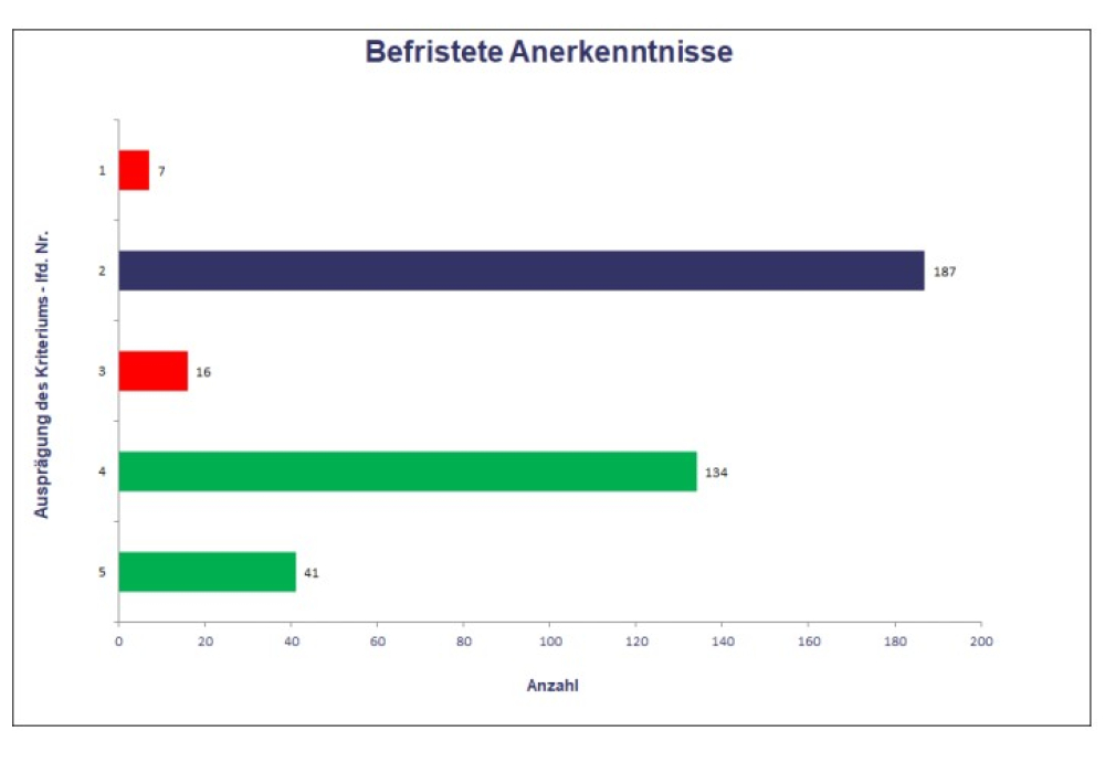 AssCompact hat bei der infinma Institut für Finanz-Markt-Analyse GmbH nach einer Einordnung gefraft. Das Analyse- und Beratungshaus untersucht anhand regelmäßiger Analysen die Marktstandards in der Versicherungslandschaft, darunter auch in der BU. Demnach sei es „üblich“, dass ein zeitlich befristetes Anerkenntnis in Ausnahmefällen möglich ist. Es ist also der derzeitige Marktstandard. Im Jahr 2025 nutzten 187 der 385 von der infinma untersuchten Tarife diese Klausel (siehe Grafik). infinma bewertet sie derzeit als „neutral“ (Marktstandard erfüllt). „Der Verzicht auf ein befristetes Anerkenntnis wird hingegen bei infinma positiv bewertet“, erklärt Dr. Jörg Schulz ist geschäftsführender Gesellschafter und Mitbegründer der infinma.