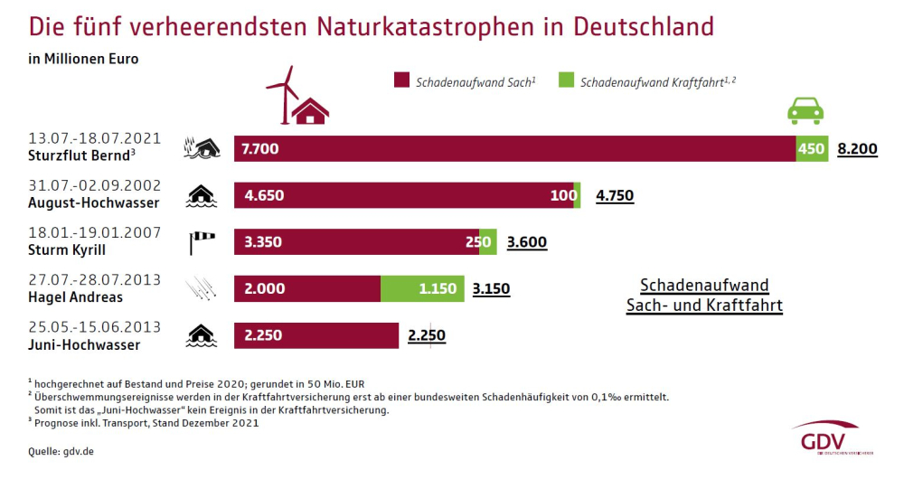Der Gesamtverband der Deutschen Versicherungswirtschaft (GDV) e.V. hat die Schadenbilanz infolge der katastrophalen Starkregenereignisse an Ahr, Erft und in weiteren Regionen Deutschlands erneut nach oben korrigiert.