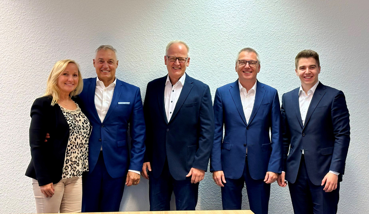 Bild: © Helmsauer/DG-Gruppe; v. l. n. r.: Karin und Josef Bader, Roderich Münker (Vorstand der DG-Gruppe) und Bernd sowie Steffen Helmsauer