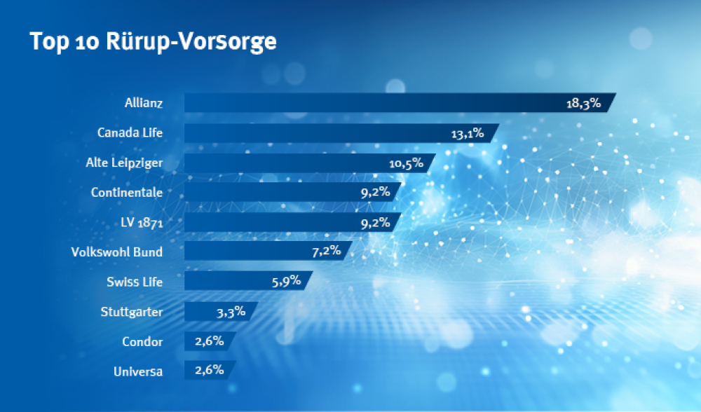 Grund genug, sich einmal anzuschauen, welche Anbieter die befragten Maklerinnen und Makler derzeit in Sachen Rürup-Vorsorge überzeugen.