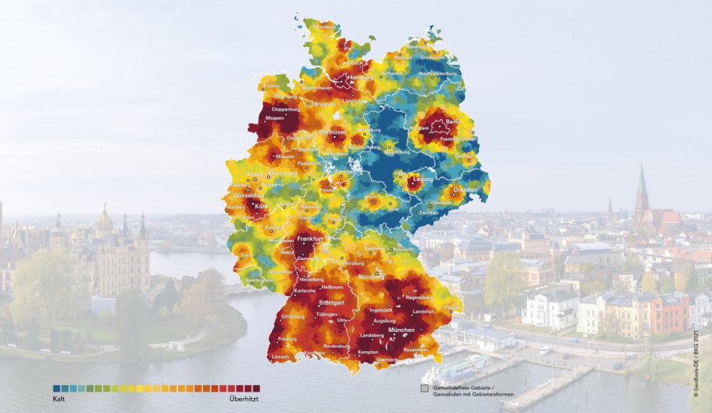 Der Projekt- und Gebietsentwickler BPD (Bouwfonds Immobilienentwicklung) und das Analyseunternehmen bulwiengesa haben zum dritten Mal eine Wohnwetterkarte erstellt. Sie verdeutlicht die Situation des deutschen Wohnungsmarktes anhand eines Temperaturgefälles von heiß bis kalt. Ziel ist es, für jede der 11.000 Gemeinden in Deutschland die Temperatur auszuweisen. Um die Beziehungen zwischen Großstadt und Umland genauer zu erfassen, wurde das Auswertungsverfahren verfeinert.