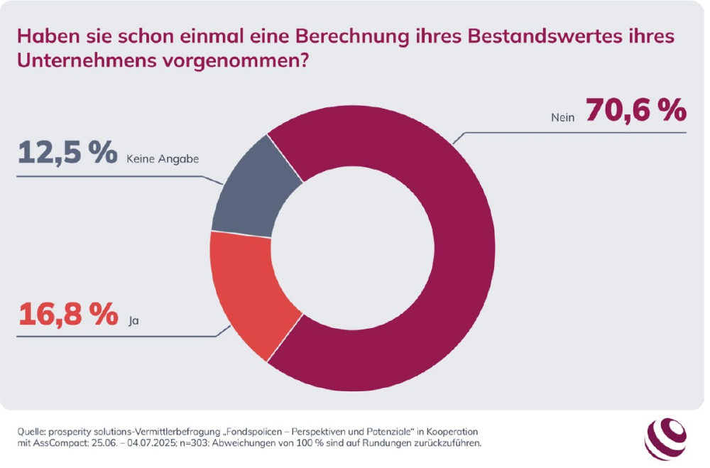 Deutschlands Vermittler setzen auf ihren Bestand als wichtige Säule ihrer Altersvorsorge. Laut einer aktuellen Umfrage der prosperity solutions AG, einem Tochterunternehmen der digitalen Finanzgruppe the prosperity company AG und Schwesterorganisation von Liechtenstein Life Assurance AG, und der AssCompact Studien kennen über 70% der deutschen Vermittler den genauen Wert ihres Bestands nicht. Die Umfrage wurde im Juni und Juli 2025 durchgeführt.