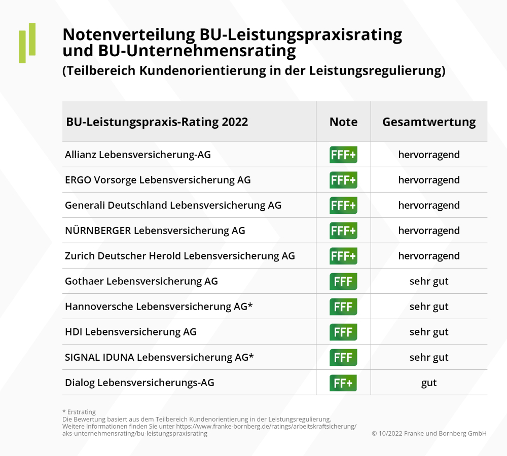 Franke und Bornberg bewertet BU-Versicherer als „hervorragend“